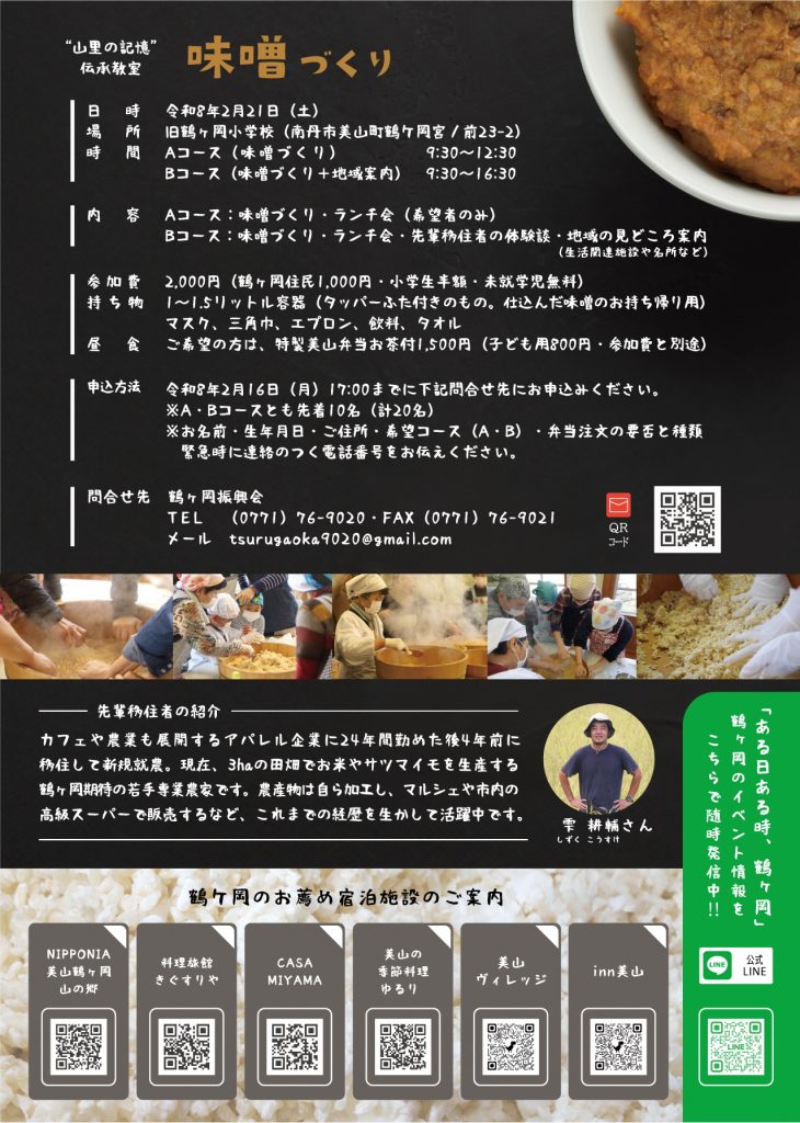 2月21日「“山里の記憶”伝承教室~味噌づくり~」開催について【お知らせ】